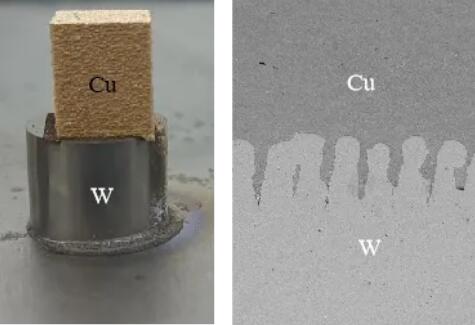 異種金屬增材制造是利用兩種或兩種以上金屬增材成形同一復(fù)雜構(gòu)件,以滿足極端服役環(huán)境下構(gòu)件功能化應(yīng)用需求。在可控核聚變、航空航天、電力等應(yīng)用領(lǐng)域,鎢-銅金屬構(gòu)件具備金屬鎢高熔點(diǎn)、低濺射和低氚滯留以及金屬銅優(yōu)異導(dǎo)熱、導(dǎo)電等特性,近年來備受關(guān)注。
