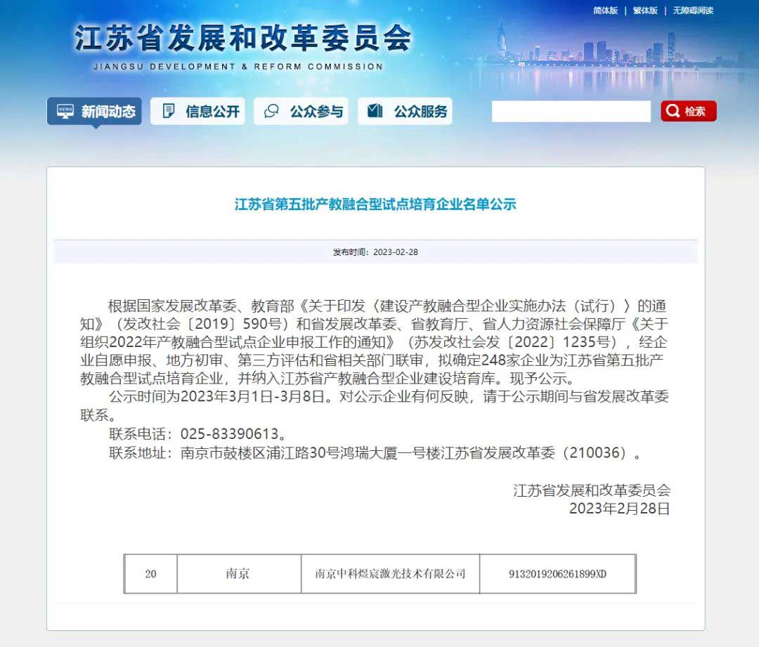 2月28日,江蘇省發(fā)展和改革委員會發(fā)布通知,公布江蘇省第五批產(chǎn)教融合型試點(diǎn)培育企業(yè)名單,中科煜宸成功入選,并被納入江蘇省產(chǎn)教融合型企業(yè)建設(shè)培育庫。